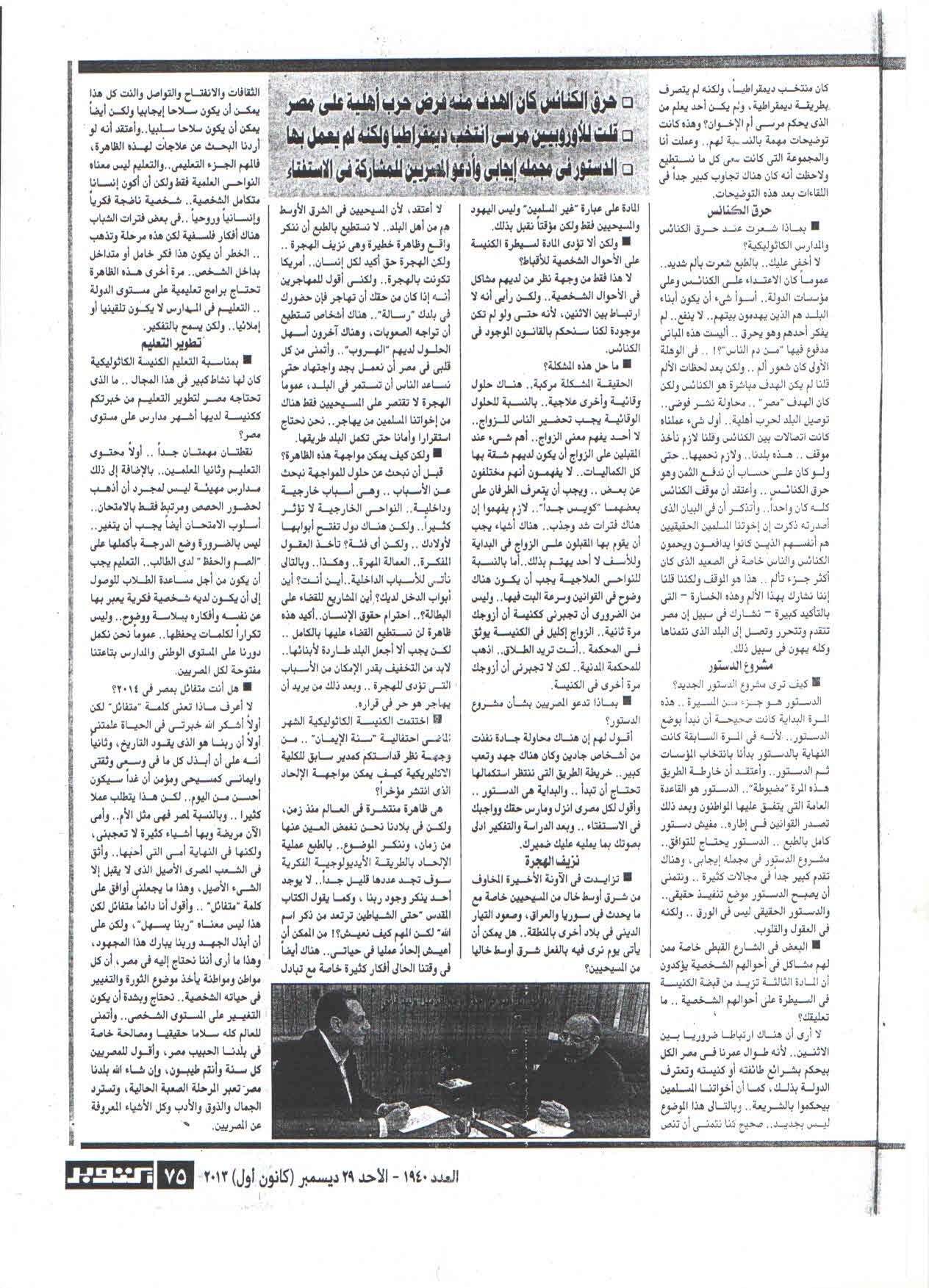 واتقدم لغبطة ابينا البطريرك بخالص التهنئه فى عيد تنصيبه البسيط للغايه مرعاة منه للظروف الاقتصاديه واحتراما للشهداء من ابناء وطننا وذلك ليكون غبطته قدوه لابنائه وتيمنا بالحبر الاعظم الذى اطلق مبادرة الكنيسه الفقيره وكل عام وقداسته بخير