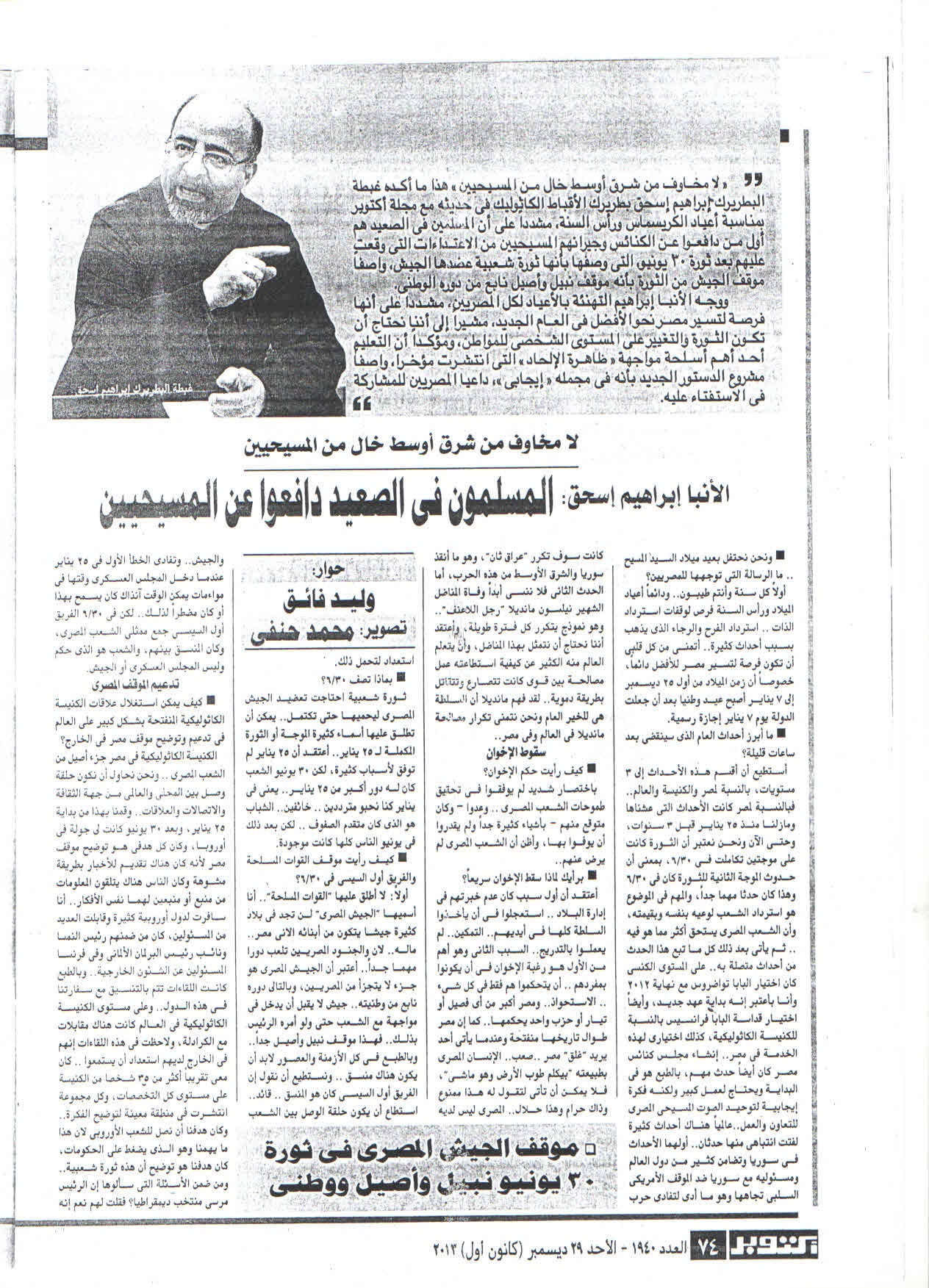 يتقدم موقع كنيسة الاسكندرية بخالص التهنئة لغبطة أبينا البطريرك الانبا ابراهيم اسحق بمناسة مرور عام على قداس تنصيب غبطته بطريركا لكرسي كنيسة الاسكندرية للأقباط الكاثوليك.