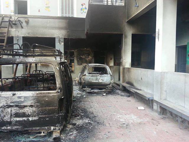 واستغثنا ولم يستجب احد، لانهم قد قاموا بحرق كل سيارات الاطفاء في المنيا. وحاول الجيران التصدي لهم فقاموا بضربهم وارهابهم واغلقوا مصادر المياه الرئيسية عن المدرسة والدير قبل الحرق. وسرقة كاميرات المراقبة .