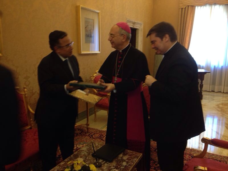 وذكر المتحدث الرسمي باسم وزارة الخارجية السفير بدر عبد العاطي أن الوزير فهمي أكد خلال المقابلة أن مصر تسير نحو بناء مجتمع مفتوح متسامح يتسع للجميع على أساس المواطنة. كما أعرب فهمي عن اهتمام مصر – في إطار رئاستها الحالية لمنظمة التعاون الإسلامي- بالحوار بين الأديان، وعرض استضافة مصر سلسلة من الفعاليات والندوات تجمع دارسين شباب من الجامعات الإسلامية والجامعات التابعة للفاتيكان للتفاعل والحوار وتعزيز التفاهم بين الأجيال الشابة، مشيراً إلى أن الحوار المقترح لن يركز على العقائد وإنما على القيم والمبادئ التي تجمع بين البشر كافة.