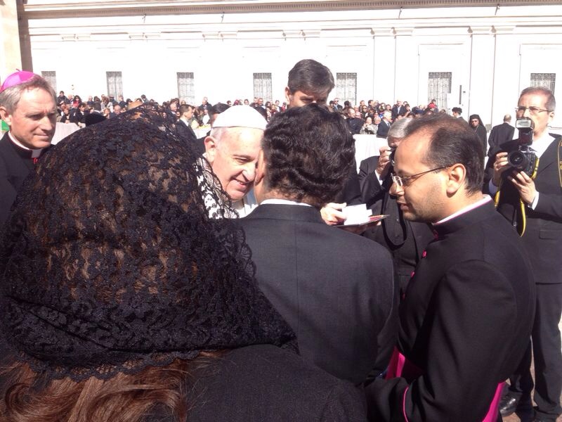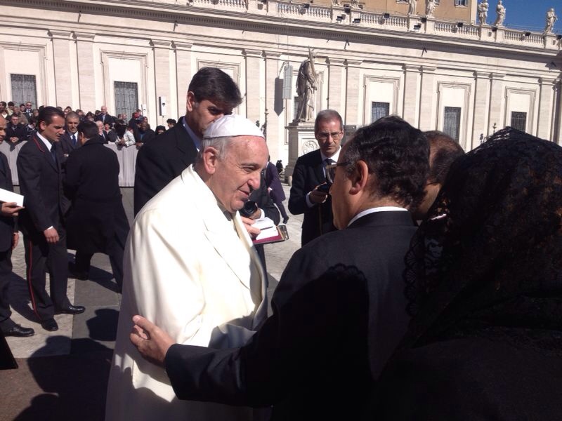 وقال المتحدث أن قداسة البابا فرانسيس كان قد ألقى كلمة للجماهير المحتشدة في الساحة الرئيسية للفاتيكان صباح اليوم وجه خلالها تحية حارة إلى الناطقين باللغة العربية وخاصة القادمين من جمهورية مصر العربية في إشارة للوفد المصري.