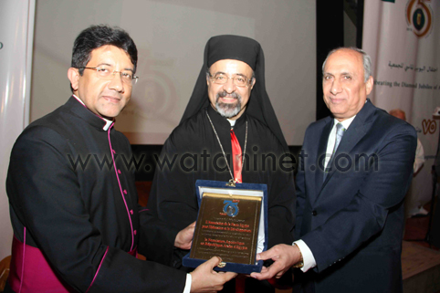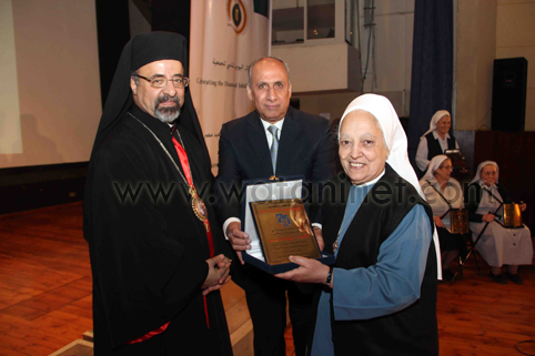 بعدها جاءت الفقرة الفنية على المسرح الملحق بالمدرسة لينشد ” كورال جمعية الصعيد ” – احد ثمار الجمعية -، روائع التراث الشعبي، والموشحات والمواويل، وكانت قد اهتمت بتكوين الفريق الأخت سيليست من راهبات القلب المقدس، حيث نال اعجاب الجميع، ثم قدمت الطفلة ساندرا نشأت بالصف الأول الابتدائي بمدرسة الجمعية من القوصية ” فقرة شعرية ” أعقبها الأستاذ أسعد ابراهيم من مكتب سوهاج أيضا بأبيات شعرية تسجل لمسيرة ال 75 عاما … ثم كانت فقرة فريق ” التحطيب ” بالعصي في أداء رائع لتحكي لتراث الصعيد، وكان قد قام بالتقديم للاحتفالية الأستاذ مجدي الجميل عضو مجلس الادارة .. ثم جاءت فقرة التكريم والاعتراف بالجميل لكل من قدم يد العون للجمعية ودفع مسيرتها التنموية والتعليمية والنهوض بالانسان على مدى ال 75 سنة.. حيث قام الأستاذ أنطون بمنح ” درع الجمعية ” لكل من لهم أيادي بيضاء من الأباء المطارنة والكهنة والرهبان والراهبات … حيث كرم الأخوات أديلا، بلانكا، وسيليستا من راهبات القلب المقدس ” السكركير “، والأخت سوزان سليم والأخت جوليانا من راهبات قلب يسوع المصريات، والأخت ماجدة جرجس من راهبات الكرمل للقديس يوسف، والأخت كريستين من راهبات المحبة دي بيزانسون، والأخ ميشيل لوكلير من رهبنة أخوة يسوع الصغار، والأخ جيه من رهبنة أخوة المدارس المسيحية ” الفرير “، والأب فاضل سيداروس اليسوعي عن الرهبنة اليسوعية، والأب أنطون جيد وكيل مطرانية المنيا، ثم تفضل سيادته بمنح ” درع الجمعية ” للسادة أصحاب النيافة الأباء المطارنة الأنبا يوأنس زكريا مطران ايبارشية الأقصر، الأنبا يوسف أبو الخير مطران ايبارشية سوهاج، الأنبا كيرلس وليم مطران ايبارشية أسيوط، الأنبا بطرس فهيم مطران ايبارشية المنيا، ثم تسلم المونسينيور ماثيو كوريان مستشار سفارة الفاتيكان بمصر ” درع الجمعية ” ثم منحت الجمعية الدرع للكنيسة الكاثوليكية في مصر ممثلة في غبطة أبينا البطريرك الأنبا ابراهيم اسحق، بعدها كرمت الجمغية رئيس مجلس ادارتها الأسبق الأستاذ أمين فهيم والذي عبر بروح التواضع أنه لا يستحق التكريم وانما استثمر كل المواهب التي منحه اباها الله تعالى لتمجيد اسمه القدوس وخير الجمعية وأضاف أنه اليوم يحتفل بيوبيله المئوي، ثم اختتمت الاحتفالية بالصلاة والبركة الرسولية .