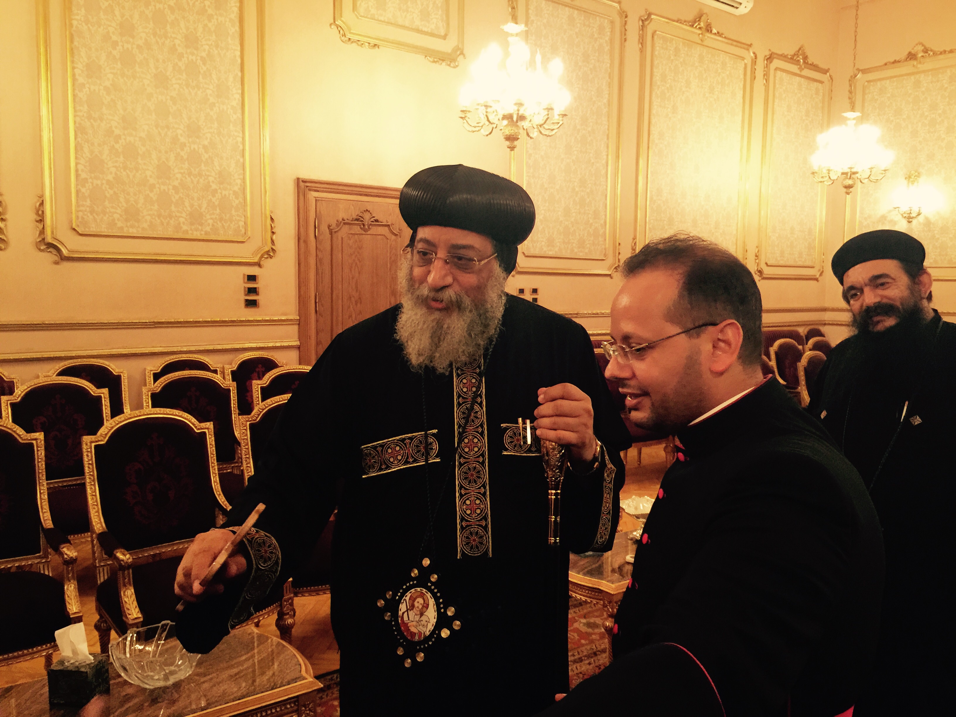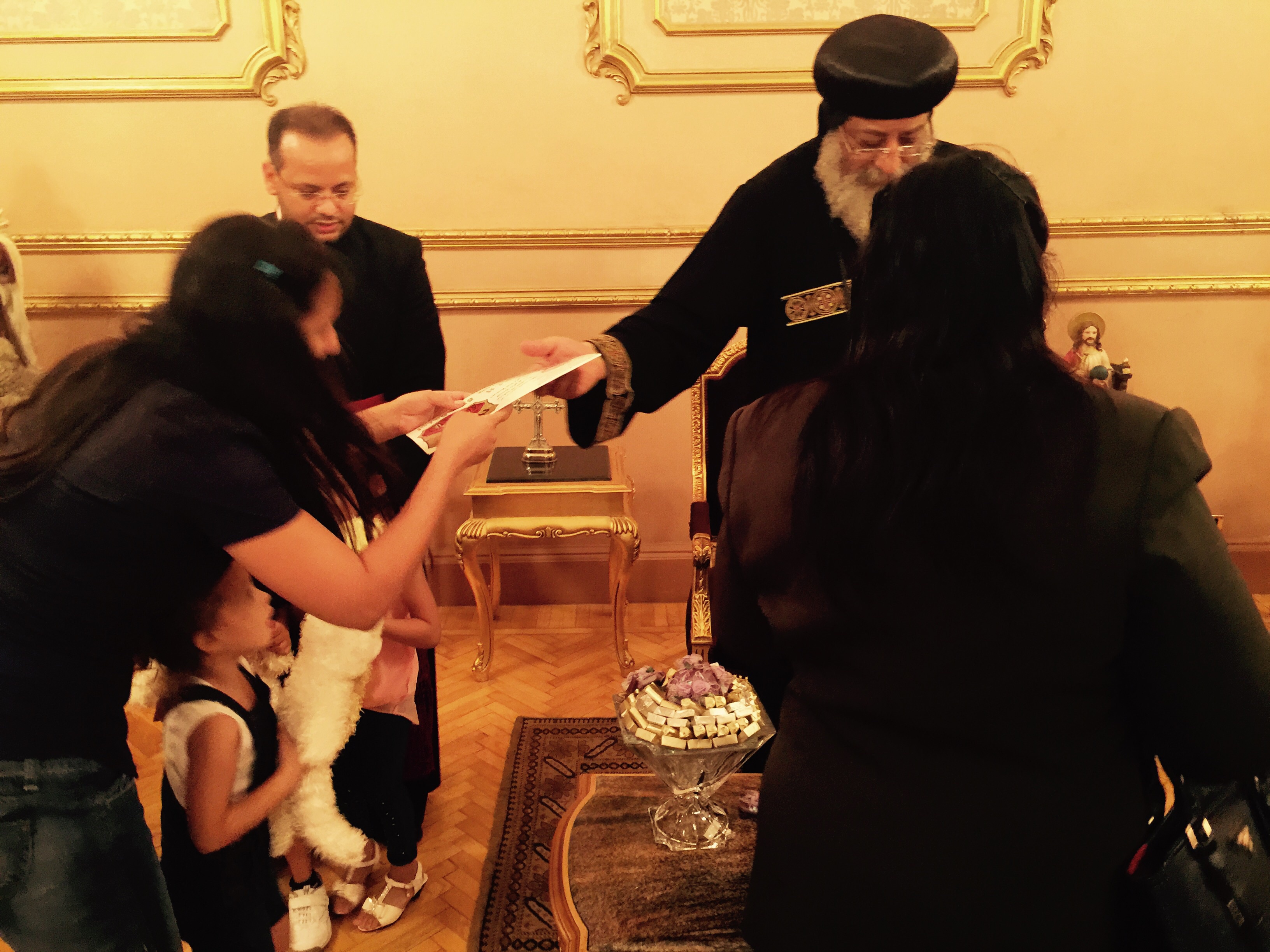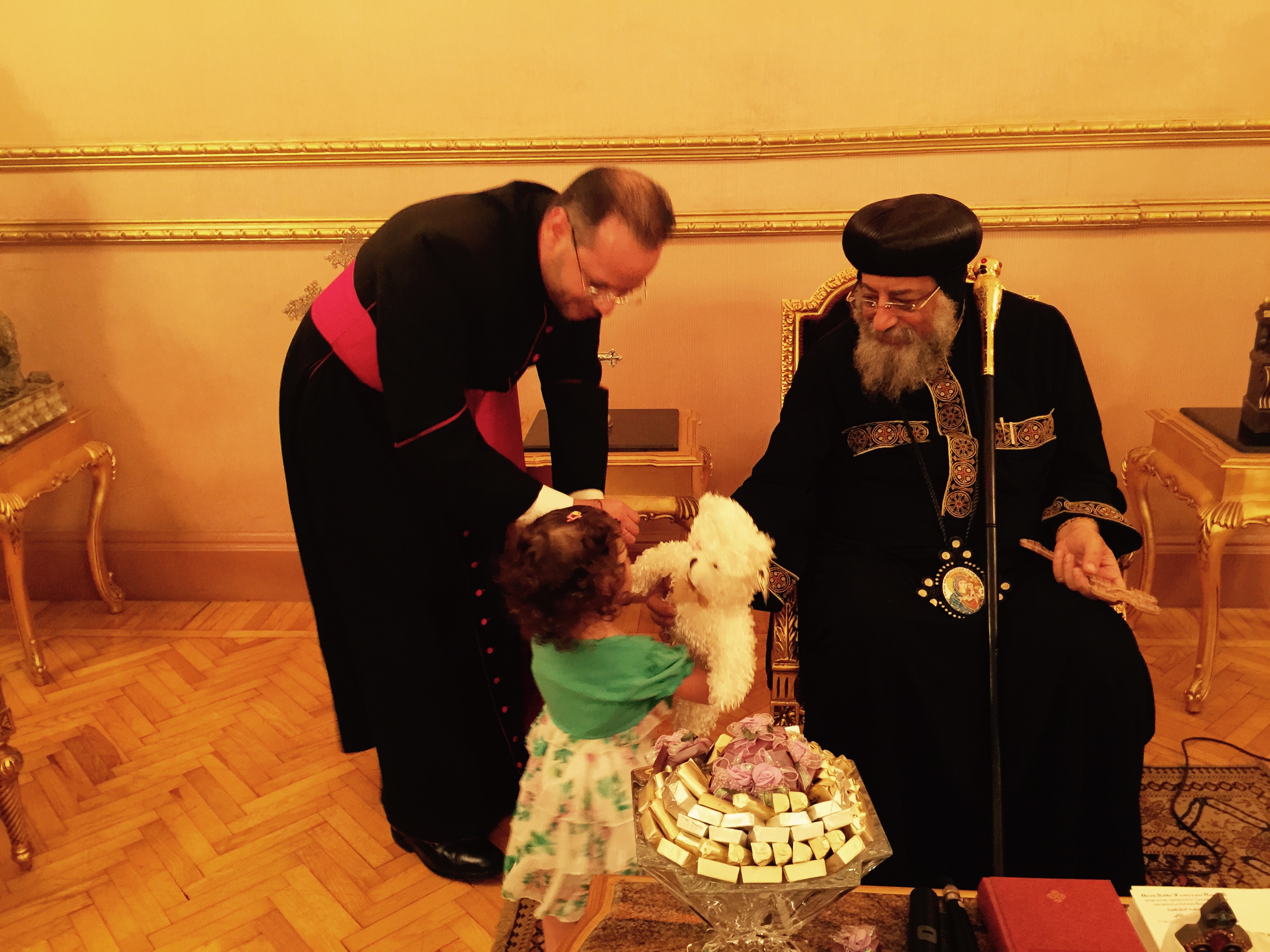 استقبل ظهر اليوم ٣ سبتمبر ٢٠١٥ قداسة البابا تواضروس الثاني، في المقر البطريركي بالعباسية، حضرة المونسينيور د. يوأنس لحظي جيد، السكرتير الشخصي لقداسة البابا فرنسيس، وجميع أفراد عائلته.