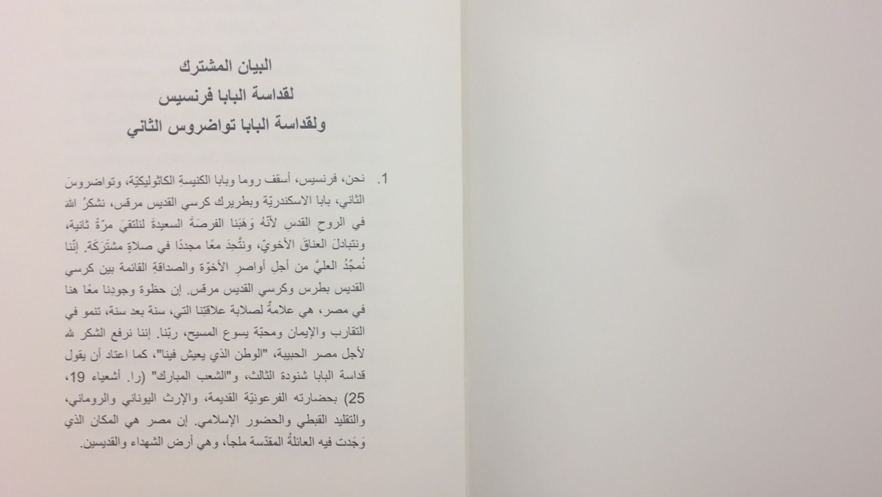 • صور البيان المشترك بين الكنيستين بتوقيع البابا فرنسيس والبابا تواضروس الثاني